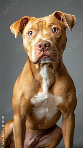 pitbull, pitbull, puppy, dog, canino, brown, white, grey, sitting, portrait, pet, animal, studio, background, cute, adorable, friendly, loyal, faithful, playful, energetic, muscular, paw, nose, ear, eye, tail, tongue, home, family, love, happiness, doggy, best friend