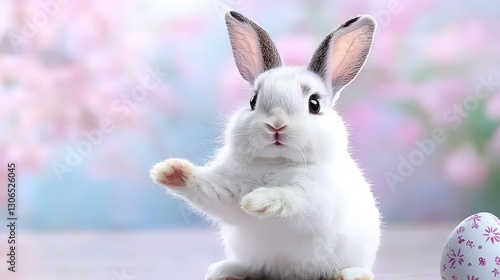 rabbit, rabbit, easter, spring, cute, animal, adorable, pet, fluffy, white, baby, springtime, flower, blossom, pastel, colours, nature, egg, small, playful, sitting, paw, garden, little