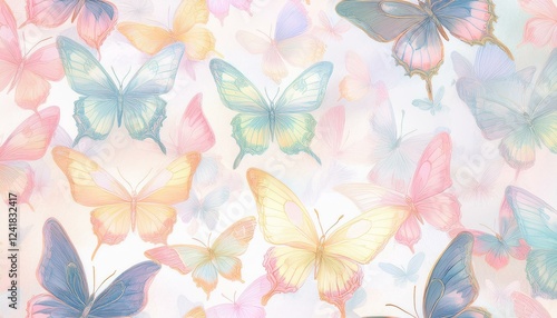 Cute butterflies hand drawn seamless pattern. Delicate colorful butterflies on white background. Beautiful pastel creatures wallpaper design.