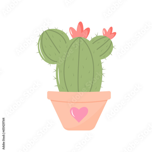 Cute cactus in a pot with heart. Domestic plant in pastel colors