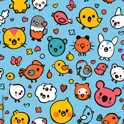 cute, cartoon, animal, bird, pattern, blue, background, design, colourful, adorable, character, seamless, illustration, children, playful, fun, happy, vibrant, joyful, whimsical, nature, graphic, cheerful, decorative, art, drawing, creative, doodle, fabric, print, textile, wrapping, paper, baby, childcare center, children, sweet, fantasy, friendly, animal, bird, heart, butterfly