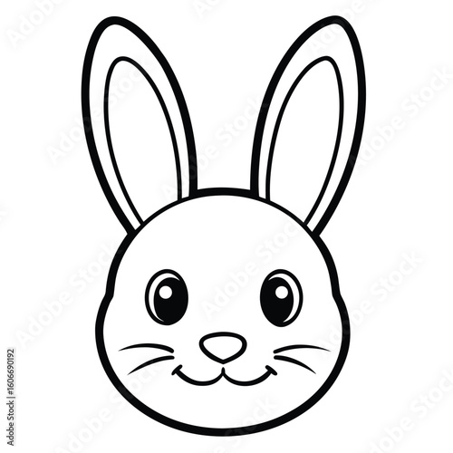 Cute cartoon bunny rabbit face with long ears and a happy expression perfect for coloring pages and children s illustrations