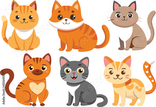 cat, cartoon, cute, adorable, pet, illustration, animal, felino, orange, grey, brown, white, sitting, standing, big eye, friendly, expression, collection, set, design, vector, graphic, art, character, kitten, cat, domestic, domestic cat, mammal, tail, paw, fur, whisker, nose, mouth, eye, happy, playful, sweet, lovely, fluffy, soft