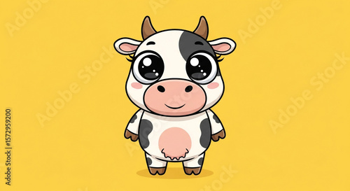 cow, cartoon, illustration, animal, cute, farm, vector, dairy, cattle, character, design, graphic, drawing, clip art, isolated, mammal, domestic, funny, happy, baby, agriculture, nature, sweet, mascot, milk, artwork, children, clip, art, farmhouse, calf, eye, horn, spot, yellow, background, white, black, pink, charming