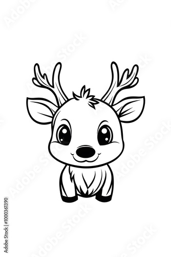Cute Cartoon Deer with Big Eyes Black and White Illustration
