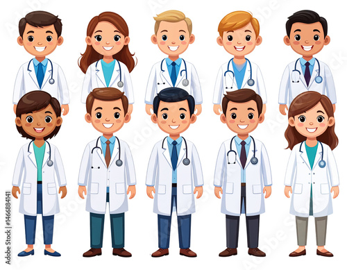 Cute Cartoon Doctor Characters with Stethoscopes and Smiles, Isolated on Transparent Background png