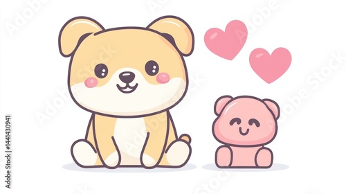 Cute cartoon dog and bear, happy and adorable, simple design, kids digital art, possible use for greeting cards