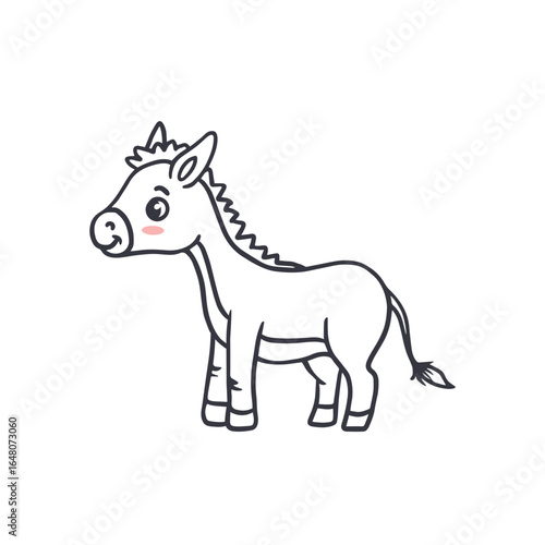 Cute cartoon donkey isolated on white. Animal in doodle style for children's coloring, worksheet, and activity pages. Vector illustration