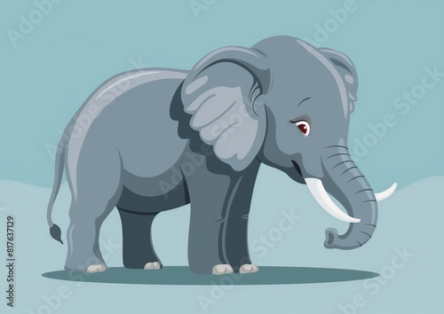 Cute Cartoon Elephant Standing on a Plain Blue Background Illustration