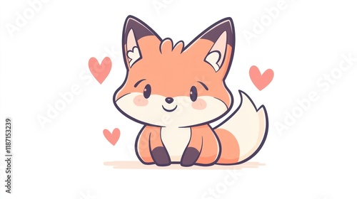Cute cartoon fox, hearts, white background, children's book illustration
