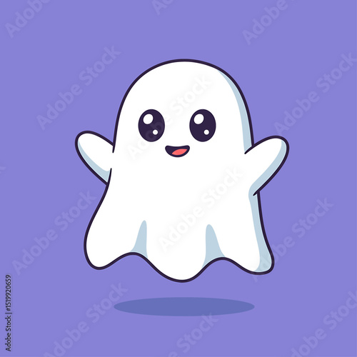 Cute Cartoon Ghost Icon Floating White Sheet Shape Showcasing Friendly Expression For Halloween Character Mascot