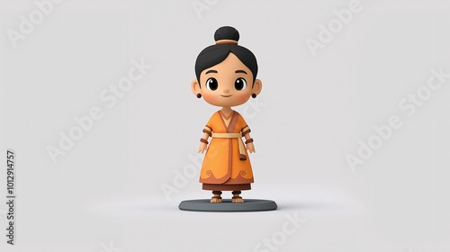character, cartoon, girl, traditional, outfit, orange, cute, playful, smiling, happy, design, animation, children, culture, cheerful, fun, fashion, art, adorable, youth, creativity, illustration, colourful, standing, fantasy, joyful, cultural, coiffure, simple, digital artwork, expression, young, model, personality, clothes, friendly, animated, childlike, graphic, vibrant, charming