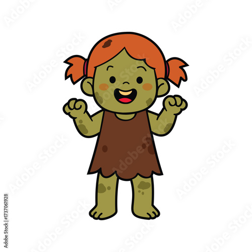 Cute Cartoon Girl Monster Character. Playful Halloween Illustration for Kids and Educational Design