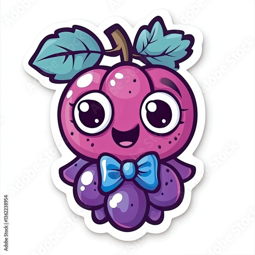 grape, purple, pink, leaf, cute, cartoon, happy, bow, attaching, sticker, illustration, animation, adorable, friendly, smiling, sweet, charming, colourful, graphic, design, character, drawing, funny, vibrant, fruit, berry, grape, food, artwork, art, berry