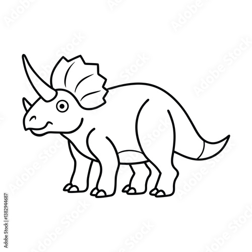 Cute Cartoon Line Drawing of a Triceratops Dinosaur for Coloring Activities