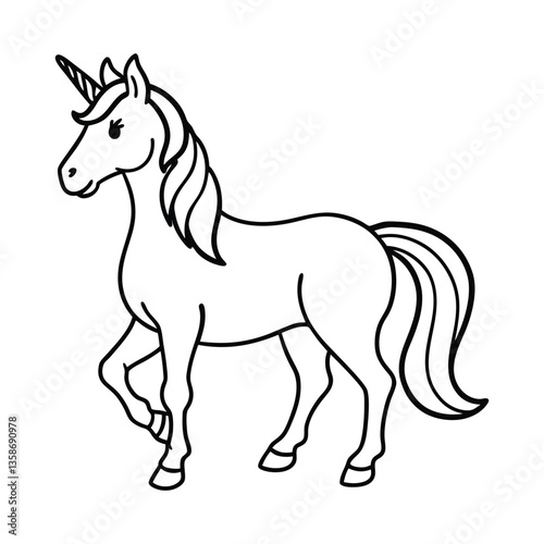 Cute Cartoon Outline Illustration of a Unicorn for Coloring Activity