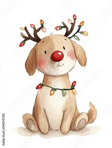 reindeer, cartoon, cute, festive, light, antler, holiday, illustration, animal, christmas, cheerful, character, whimsical, playful, joyful, decorative, seasonal, artwork, adorable, puppy, smiling, fun, creative, holiday spirit, cheer, joy, illustrative