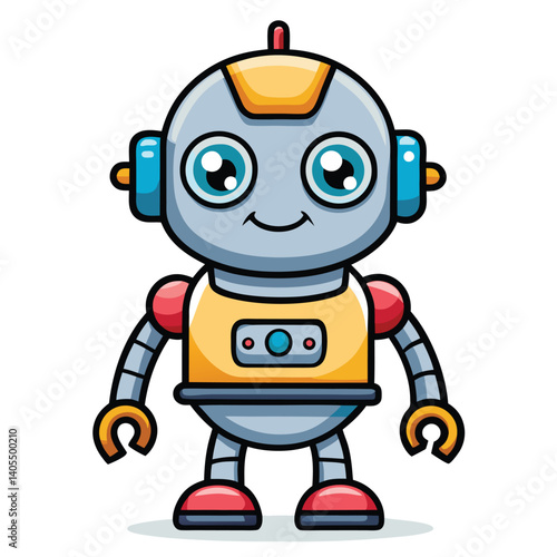 robot, cartoon, cute, friendly, technology, futuristic, animation, character, design, illustration, digital, graphic, adorable, children, children, toy, mechanical, electronic, ai, smart, modern, imaginative, science, future, happy, smile, eye, head, body, arm, leg, standing, positive, colourful, yellow, blue, red, grey, robotic, learning, education, innovation, invention, program, programming