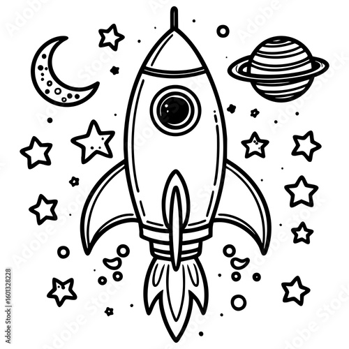 drawing, printable, hand-drawn, colouring, colouring, painting, outline, art, line art, outer space, space exploration, space-travel