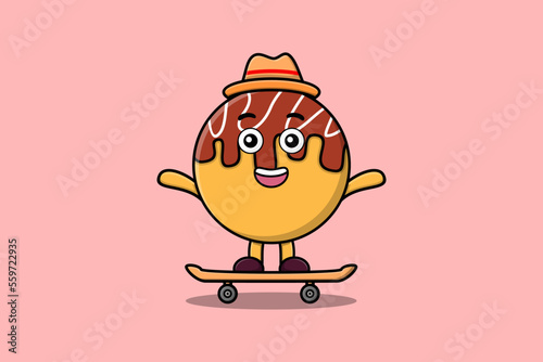 Cute cartoon Takoyaki character playing sport in concept flat cartoon style illustration