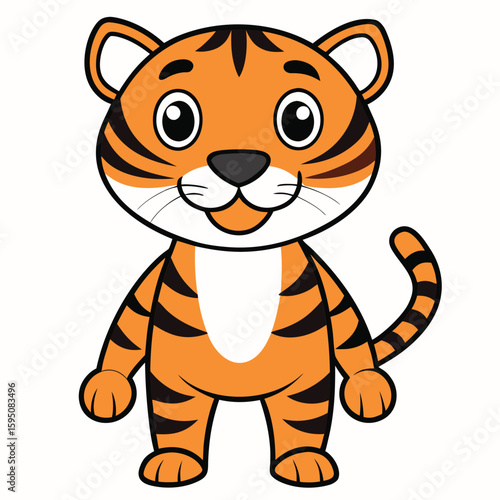 tiger, cartoon, animal, cute, drawing, vector, illustration, children, clip art, orange, black, white, mammal, wildlife, striped, felino, zoo, character, design, art, graphic, isolated, happy, face, tail, ear, eye, nose, mouth, paw, fur, stripes, wild, nature, mascot, funny, playful, standing, pose, friendly, domestic, icon, symbol, element, baby