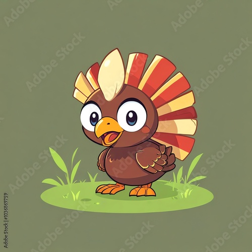 turkey, cartoon, bird, cute, animal, illustration, feather, brown, red, yellow, green, grass, beak, eye, wildlife, avian, graphic, farm, fowl, domesticated, plumage, wing, tail, fauna, happy, adorable, funny, graphic, art, digital, clip, artwork, design