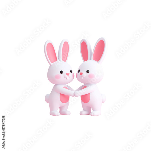 Cute cartoon white bunny illustration with pink ribbon and red heart for Easter Isolated white
