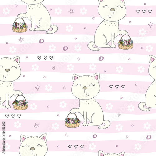pattern, cute, cat, seamless, pet, vector, children, background, drawing, grey, joy, pastel, heart, decoration, fun, day, scrapbook, many-coloured, love, illustration, funny, artwork, decorative, design, colourful, valentine, art, artistic, kitten, cartoon, wallpaper, white, head, graphic, hand-made, smile, doodle, pink, contrast, happy, animal, flower, basket