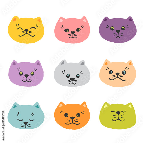 cute, cat, face, head, sweet, character, vector, illustration, cartoon, animal, doodle, collection, set, baby, clip art, background, colours, design, fun, funny, happy, isolated, toy, sticker, pattern, emotion, meow, hand-drawn, element
