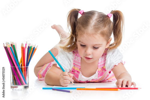cute child drawing with colorful pencils