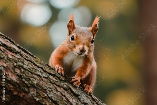 Cute close-up of a squirrel gripping onto a tree branch, showcasing the adorable nature of wildlife in its natural habitat, portrayed in a vivid and lively manner.