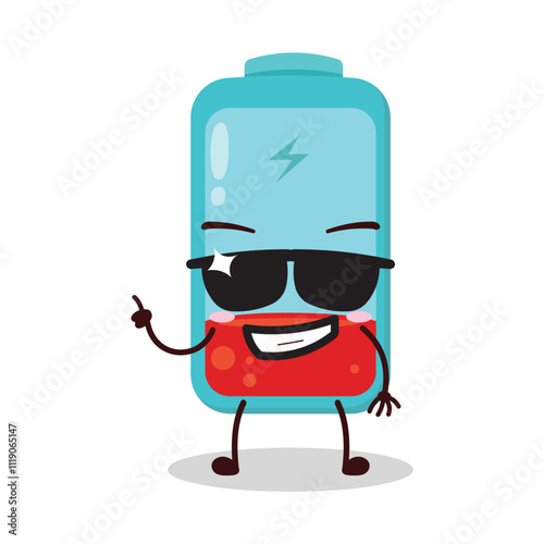 cute cool expression of empty battery cartoon character wear sunglasses