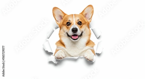 Cute Corgi Breaking Through Torn Paper - Playful and Adorable Dog Illustration