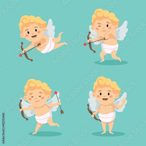 Cute cupid character set isolated. Happy Valentine s day illustration in cartoon style