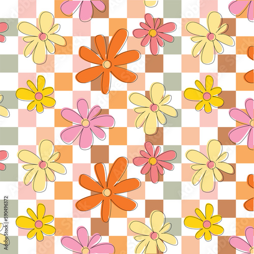 Cute daisy vector pattern background, retro flowers, groovy flower
