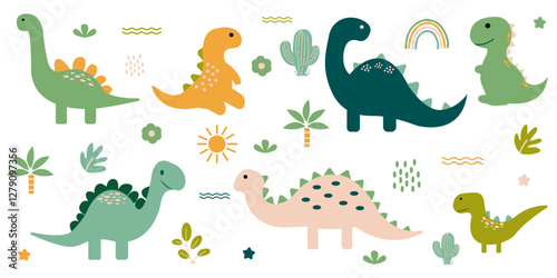 cute, dino, set, tree, plant, element, cartoon, animal, dinosaur, vector, dragon, illustration, giraffe, animal, baby, funny, camel, drawing, wild, fun, art, nature, happy, smile, colours, graphic, colourful, comic, fantasy, wildlife, reptile, jurassic, prehistoric, tyrannosaurus, prehistory, triceratops, dinosaur, brontosaurus, pterodactyl, beast