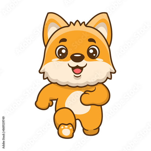 Cute dog running cartoon character. Kawaii animal concept design Hand drawn style vector illustration