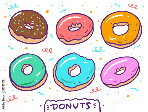 set, donut, eat, dessert, sweet, coloured, collection, cream, isolated, colourful, dough, bakery, icon, round, chocolate, pastry, donut, white, icing, sugar, tasty, glazed, cake, calorie, illustration, deliciously, topping, glaze, background, delicious, breakfast, cartoon, pink, drawing, junk, fat, unhealthy, series, frosted, hole, group, baked, ring, vanilla, flat, fast, picture, eatery, oily