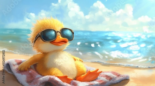 duckling, beach, sunglasses, ocean, sun, summer, cute, towel, water, relaxation, nature, animal, sunny, childhood, fun, vibrant, happy, leisure, small, fluffy, joy, bright, warmth, sand, adventure, playful, idylli, carefree, scenery, sky, coastal, cheerful, marin, sunny day, little, holiday, environment, tranquil, wanderlust, escape, innocence, peace, scenic, charming, whimsical, enjoyment, vacation