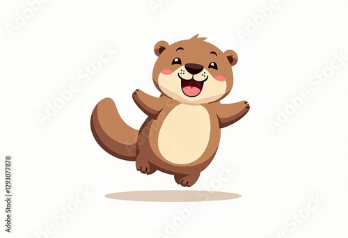 Cute Floating Otter Design: A cheerful otter floating in the air, isolated in a simple clip art style on a pure white background with defined margins.