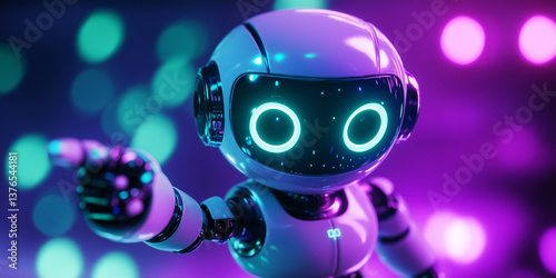 robot, ai, futuristic, neon, glow, cute, cyber, tech, digital, machine, android, modern, light, cartoon, intelligent, techy, science fiction, friendly, innovation, glowing, pointing, system, interface, virtual, bokeh, colourful, circuit, technology, android, smart, high technology, charming, robotic, future, character, fantasy, vibrant, electronic, smile, animated, contraption, bot, science