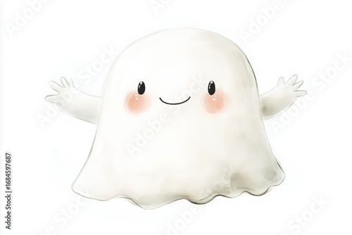 Cute ghost smiling widely with tiny arms