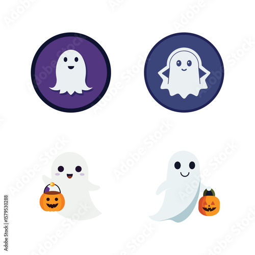 halloween, ghost, pumpkin, candy, trick or treat, cute, cartoon, vector, holiday, skittish, orange, white, purple, blue, funny, happy, children, celebration, seasonal, design, illustration, character, friendly, playful, festive, icon, graphic, simple, flat, collection