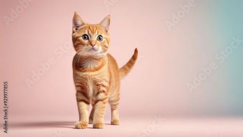 Cute Ginger Kitten on Pink Background
