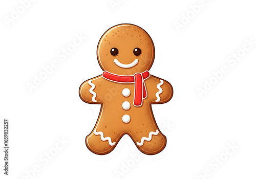 Cute gingerbread man christmas cookie with red scarf festive holiday treat festive season