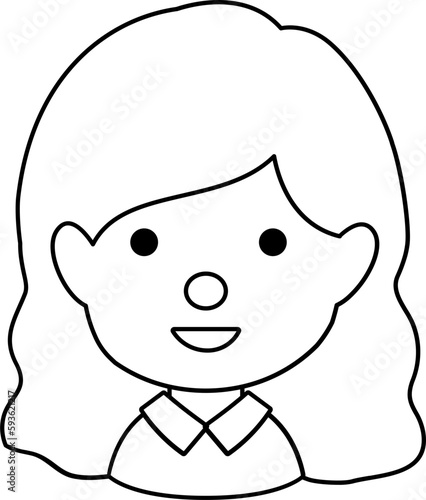 Cute Girl Black Line Style Coloring Drawing Avatar