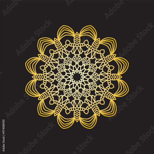 Cute gold Mandala. Ornamental round doodle flower isolated on white background. Geometric decorative ornament in ethnic oriental style.