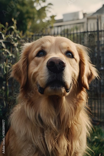 Cute golden retriever exploring a meadow filled with colorful wildflowers, capturing the essence of summer.