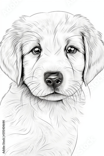 cute golden retriever puppy coloring pages, a printable drawing, in the style of realistic animal portraits, simplified dog figures, monochrome canvases, ai vector illustration