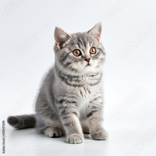 Cute Grey Kitten British Shorthair Cat Close-up Stock Photo with White Background